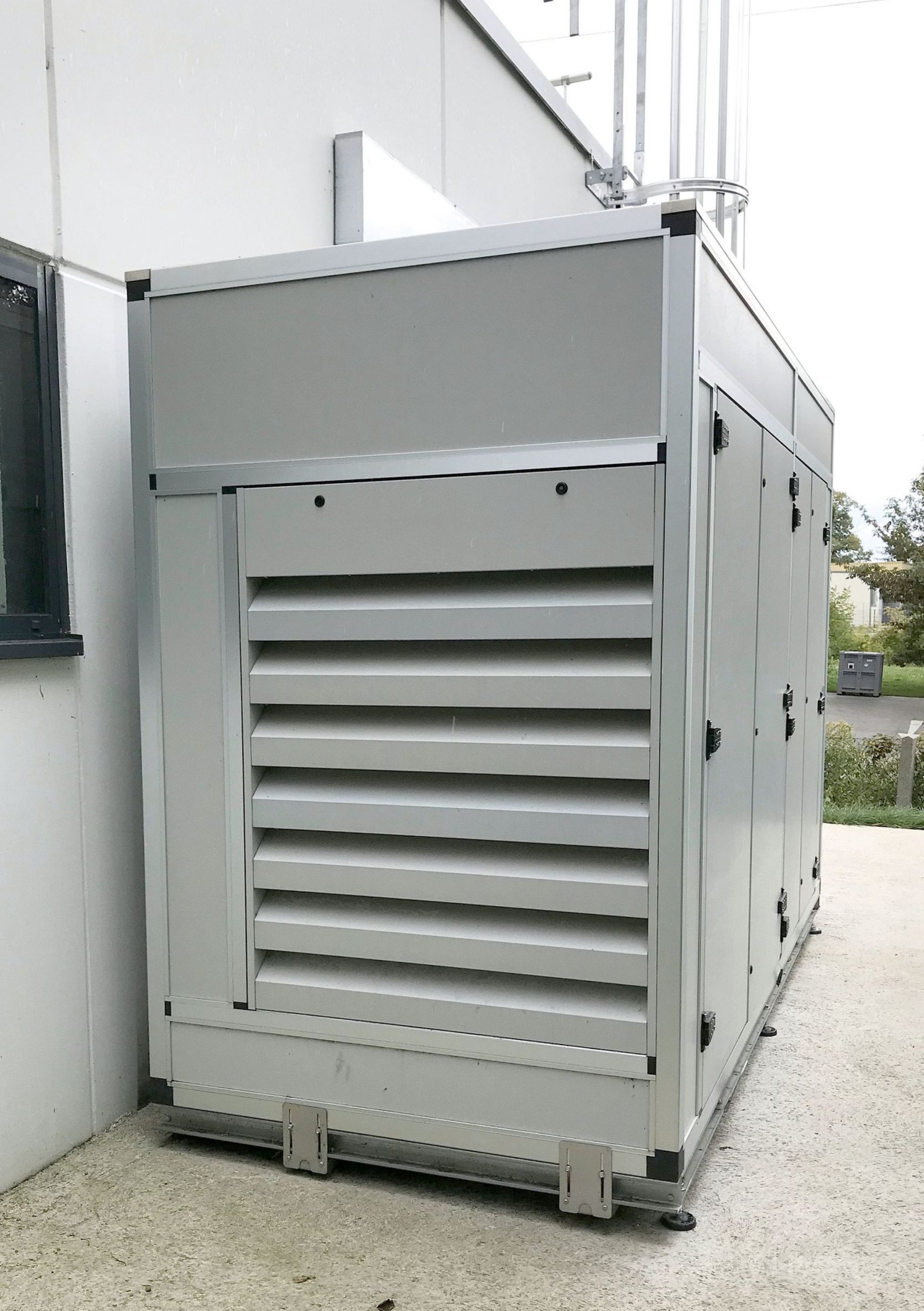 To dampen and prevent the transmission of vibrations and structure-borne noise from the built-in air conditioner to the acoustic housing, special damping pads made of Sylomer are pre-assembled as standard (without surcharge) on the carrier steel-profile rails ex works.