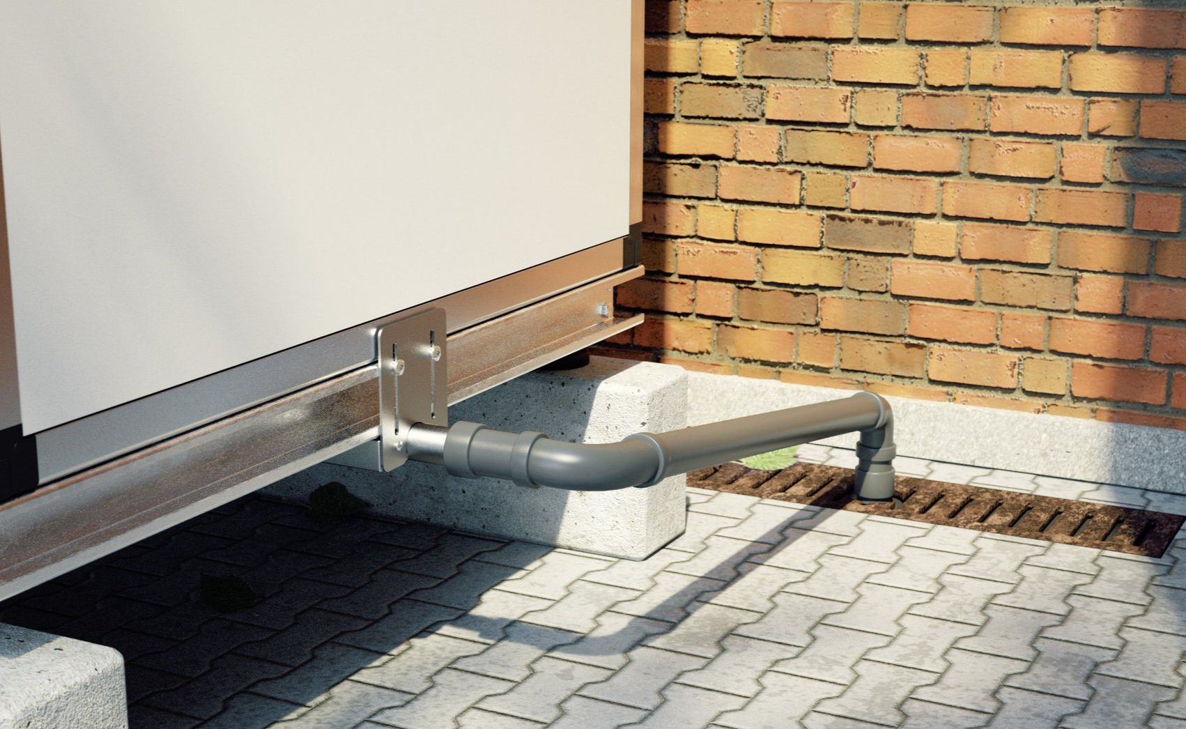 Collecting the drain and rainwater under the split-bottom of the housing and drain the water to the side for a connection to a separate drainage or sewage or into an oil-separator. This keeps the surface underneath the housing dry and always ice free in winter for adjacent paths and open spaces. Extra charge, retrofitting possible.
