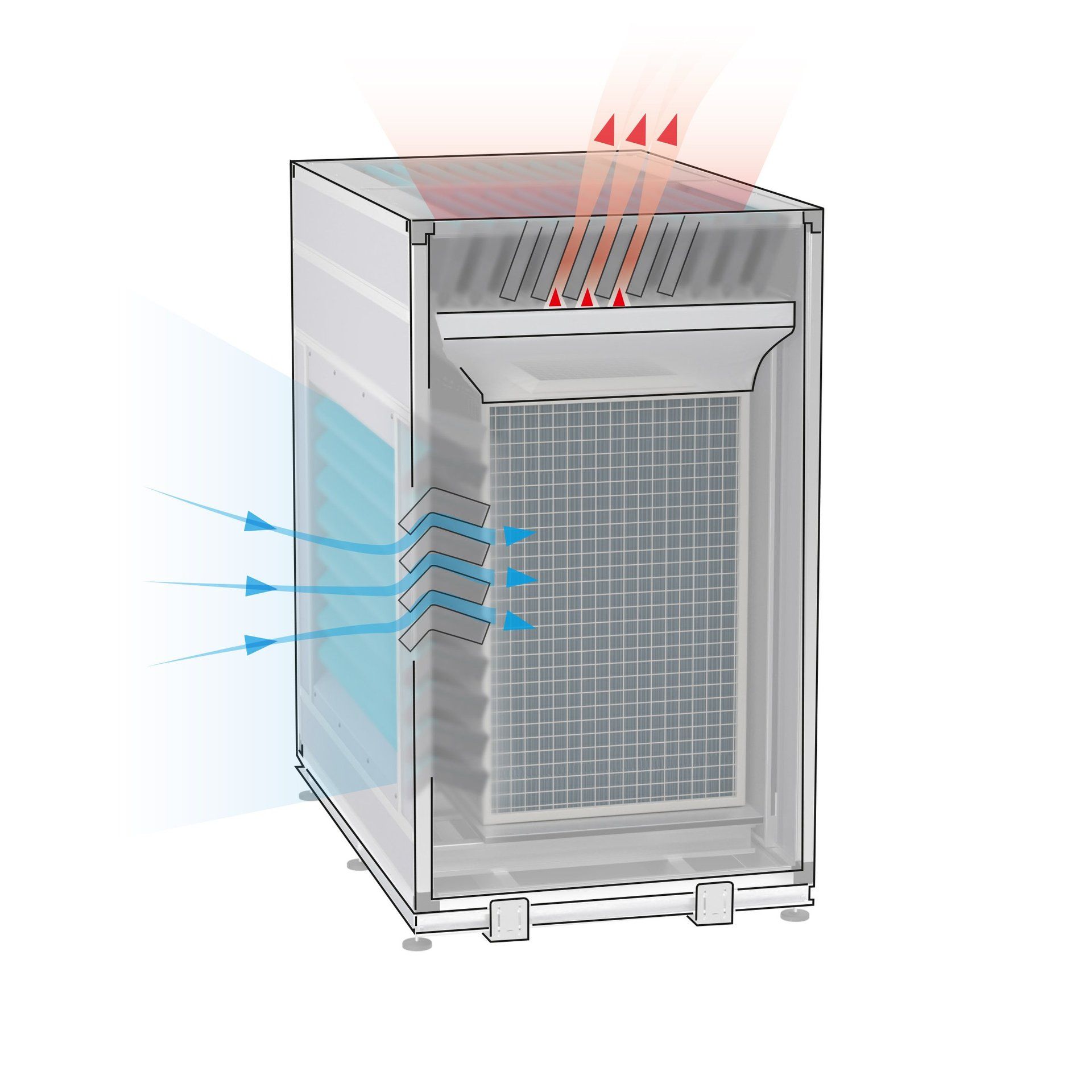 enable a higher sound attenuation by approx. -5 dB(A) in addition. These special multi-louvre packages with longer silencers can beinstalled in the KV-housing types, especially on the discharge fan side. Depending on the built-in outdoor unit, the next larger housing type is required.