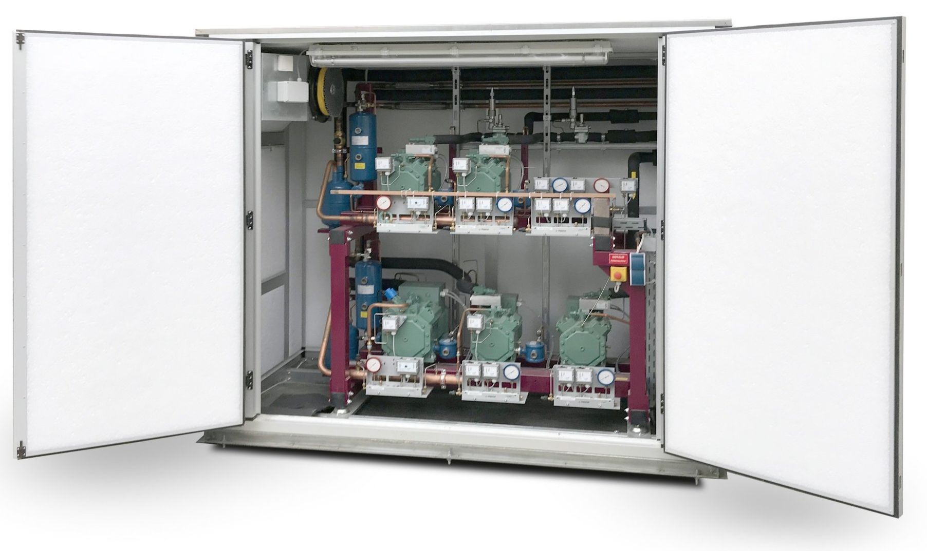 konzipiert für die Anforderungen bei Außenaufstellung einer Kälte-Verbundanlage.